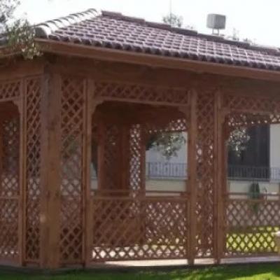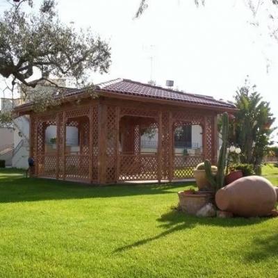 Lavorazione di gazebo in legno per giardino a Copertino